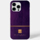 Classy exclusive looking office or personal monogrammed phone case featuring a faux gold copper metallic square with your monogram name initials and a sparkling stripe over a stylish purple indigo faux leather background. ++++++++++++++ Suitable for small business, corporate or independent business professionals, personal branding or stylists specialists, makeup artists or beauty salons, boutique or store managers. +++++++++++++++ Please note that the leather texture and glitter sparkle effects are PRINTED.