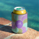 Keep your drinks cool in style with this elegant monogrammed can cooler featuring retro sun waves in vibrant purple and green tones. A unique and fun gift for beach lovers and retro fans.