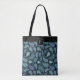 Monogrammed shopping tote bag featuring a personalised monogram on an elegant classic blue abstract floral retro paisley pattern.