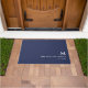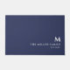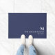 Modern doormat features a simple design in a blue and white colour palette with stylised monogram medallion in white with modern typography. Personalise with custom monogrammed initial, family name and established date, or or use the "contact this designer" button for help. A perfect wedding or housewarming gift for the stylish couple or a modern home gift for any occasion.