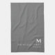 Stylish monogrammed kitchen towel features custom family name, monogram initial and year established date. Simple grey kitchen towel with stylish minimalist design featuring a bold monogram initial in white modern typography with family name and date established presented in coordinating font. A perfect addition to your kitchen decor or a thoughtful personalised housewarming gift for the new homeowners in your life or stylish monogrammed kitchen gift for the newlyweds or trendy family in your life. You can personalise with your custom monogram initial, family name and established date using the fields provided, or use the "message" button for designer help.