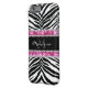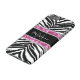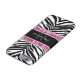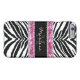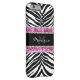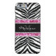 Pretty black and pink sparkle glitter-look background and faux jewellery (No real glitter or jewels - so it's safe) with black and white zebra wild animal pattern print and custom name or text and an adorable chic cute fashion statement.