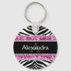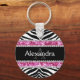 Monogrammed Faux Glitter Bling Zebra Girls Name ID Key Ring