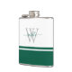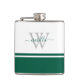 Girly modern minimalist script personalised trendy monogrammed flask. The elegant emerald green stylish script matches the line design in colour but offsets it in style, creating a fun twist to the minimalist look.
