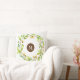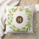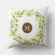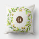 Modern monogrammed fall floral wreath with leafs and acorns over white background. Customisable pillow template