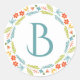 Monogrammed Flowers And Leafs Colourful Wreath Classic Round Sticker