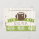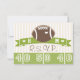 ADD THE INITIALS OF THE BRIDE AND GROOM TO THESE CUTE AND FOOTBALL THEMED WEDDING, COUPLES OR BRIDAL SHOWER, ANNIVERSARY PARTY OR ENGAGEMENT DINNER RESPONSE CARDS. A FOOTBALL WITH A HEART ON IT ON A CREAM AND WHITE STRIPED PATTERN BACKGROUND. ADD THE MONOGRAM OF THE BRIDE AND GROOM TO BE ON THE GREEN PRINTED RIBBON LOOK BANNER DESIGN FLANKED BY WHITE HEARTS ABOVE A 50 YARD LINE FOOTBALL FIELD. RSVP IN FOOTBALL BROWN. ARTWORK © CHRISSY H. STUDIOS, LLC. ALL RIGHTS RESERVED.