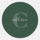 Monogrammed Forest Green Cute Girly Print Classic Round Sticker