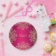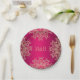 Monogrammed Fuchsia and Gold Indian Style Wedding Paper Plate
