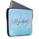 Monogrammed Girly Blue Ombre Soft Glitter Shimmer Laptop Sleeve