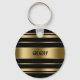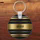 Monogrammed Gold & Black Stripes Pattern Key Ring