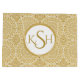 Monogrammed gold diamonds glitter texture print geometric circles seamless pattern with large 3 letters monogram. Customisable and changeable white background.