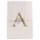 Monogrammed Gold Pearl White | Minimal Elegant Medium Gift Bag