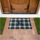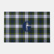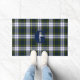 Classic blue, green, yellow, black and white Scottish Gordon Dress tartan plaid door mat.  A bold blue one letter monogram, in the middle of the mat, is ready to personalise.  Great gift idea.