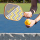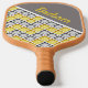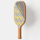 A Personalized Gray White And Yellow Pickleball Paddle Designed In An Abstract Geometric Pattern