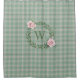 Monogrammed Green and Pink Plaid Peony Shower Curtain