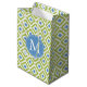 Monogrammed Green Blue Ikat Pattern Medium Gift Bag