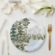 Monogrammed Green Pine Forest and Lake Paper Plate