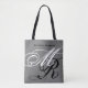 A stylish grey tote bag with your name and initials monogrammed in a script font style
