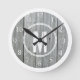 Monogrammed Grey White Distressed Wood Wall Clock for a stylish and chic addition to your farmhouse wall decor.