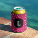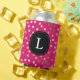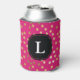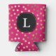 Monogrammed Hot Pink and Gold Glitter Polka Dot Can Cooler