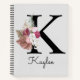 Monogrammed Initial K Pink Boho Floral notebook, perfect gift for Christmas, birthday, or other celebration for a daughter, sister, aunt, mother, or friend. Customised with monogrammed the letter K and a name. Other letters available in my shop.