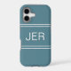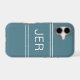 Stylish custom design features up to three bold letter initials in a shadowed white font on a contemporary turquoise green background. Background is divided into thirds by two matching stripes above and below the initials. Simple to use modern template allows for easy personalisation. E-mail beachpausedesigns@gmail.com or use the message link in this listing with questions or custom colour requests.