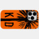 Monogrammed iPhone case with palm tree design. Cool phone cover with summer theme illustration and personalizable monogram. Add your name initials to the design. Custom sunset background colour. Vivid orange.