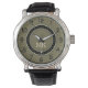This stylish and retro custom initial monogrammed wrist watch is the perfect accessory for anyone looking to add a unique and modern twist to their look. The khaki and loden green hues colours create a beautiful contrast and make this watch stand out from the crowd. The monogrammed details are subtle yet eye-catching and give the watch a personalised touch. The high-quality materials ensure that this watch is durable and long-lasting, and the classic style makes it the perfect addition to any outfit. Whether you're looking for a statement piece or a timeless accessory, this wrist watch is the perfect choice.