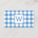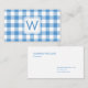 Monogrammed Light Blue White Gingham Plaid Pattern Business Card
