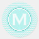 Monogrammed Light Turquoise Zigzag Pattern Classic Round Sticker