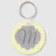 Monogrammed Light Yellow and Grey Chevron Pattern Key Ring