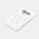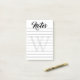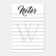 Lined post-its with Notes written at the top in a bold calligraphy script. Beneath the lines, a pale grey monogram.