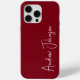 This monogrammed maroon iphone 15 pro max case is trendy yet and classic. It features your name in a fabulous modern script font in white. It's simple and minimal.