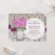 Pretty rustic style monogrammed mason jar WEDDING invitations with reddish purple hydrangea flowers and a wooden fence and antique damask pattern lace background and stitched plum hued ribbon look design. These invites can be personalised with the initials and monogram of the bride and groom on the mason jar. These invites are perfect for a country, farmhouse, garden party or barnyard style wedding. Designed by Chrissy H. Studios, LLC. All rights reserved.