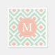 Monogrammed Mint and Coral Ikat Pattern Napkin