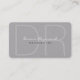 A modern premium contact card for an elegant professional... grey paper with big initials (monogram), your name in a script font style, and profession