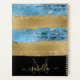 Girly modern light metallic blue print planner in brush strokes with gold, glitter, black and adorned with your script monogram, first name and initial.