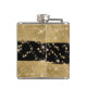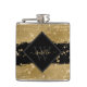 Girly fun modern black gold glitter script monogrammed flask for a personalised gift.