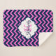 Monogrammed Navy-Blue And Pink Chevron Sherpa Blanket