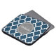 Cool cute chic trendy navy blue, grey and white Moroccan lattice quatrefoil pattern with grey nameplate for your custom monogram initial letter and name. Great gift for girly girls that love geometric patterns and monogrammed gifts.