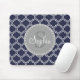 Monogrammed Navy Blue Lattice Pattern Mouse Pad