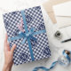 Monogrammed Navy Blue White Buffalo Check Pattern Wrapping Paper