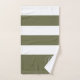 Monogrammed - olive colour ( 6a6a45 ) and white - bold stripes bath towel set Designed for those who like the classic colours for him in their bathroom .
