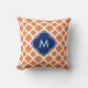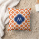 Monogrammed Orange and Royal Blue Quatrefoil Cushion