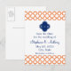 Monogrammed Orange , Royal Blue Quatrefoil Announcement Postcard