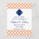 Orange quatrefoil pattern and royal blue wedding save the date cards with monograms. A simple and elegant pattern. The background is white.