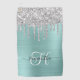 Monogrammed Pale Turquoise Silver Dripping Glitter Golf Towel