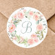 Monogrammed Pastel Pink Flower Wreath Classic Round Sticker