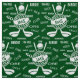 A personalised sports golf themed design in green and white. It features a gold ball that can be customised with monogram initials and a background pattern of golf clubs , golf balls and various golfing terms typography - all brought together to create a unique personalised golfing gift for the pro or amateur golfer.